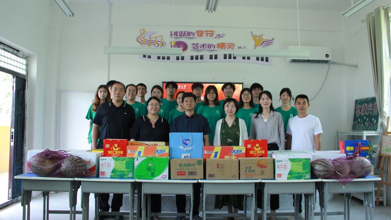 一行人共同为当地小学生们发放了崭新的书包和体育器材,助力小朋友“德智体美劳”全面发展,同时也慰问了支教团的全体学生。