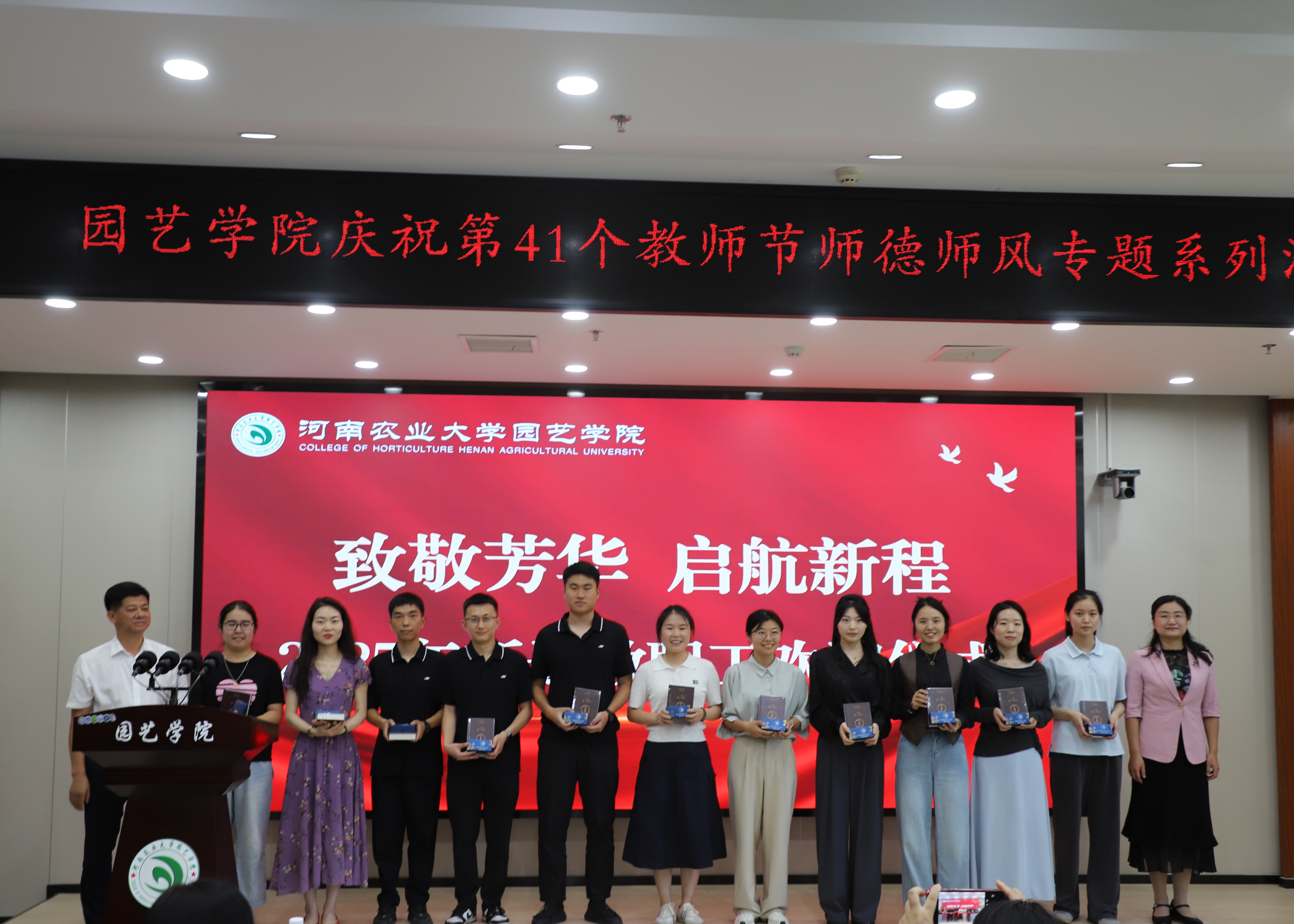 活动伊始,一段温情满满的纪念视频缓缓播放,镜头流转间,既记录了退休教师数十载扎根三尺讲台、深耕园艺教育的坚守与奉献,也展现了新进教师朝气蓬勃、怀揣教育理想的崭新风貌,瞬间点燃了现场温馨而庄重的氛围。