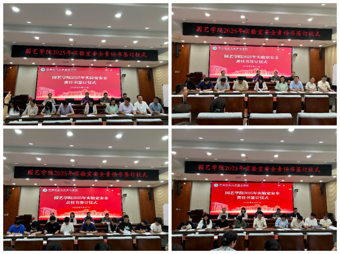 在力行楼北209会议室举行实验室安全责任书签订仪式。学院党委书记秦素玲,副书记余果,副院长陈广辉、胡建斌、谭彬,全体教职工及研究生代表等参加了仪式。