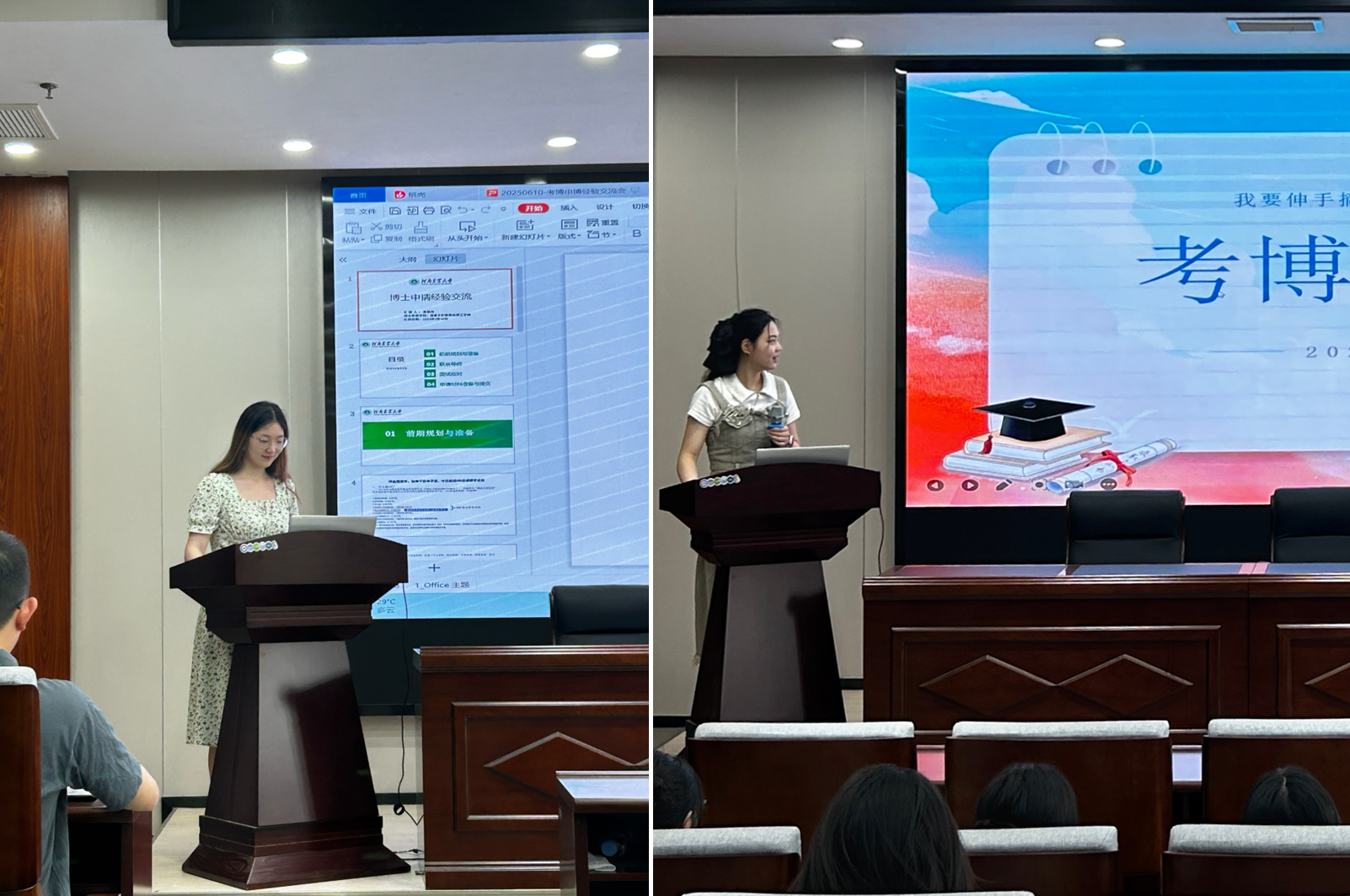 于龙子湖校区力行楼北209报告厅举行“博学领航,经验传薪”考博申博经验交流会。本次会议邀请了2022级优秀研究生代表黄慧玲、田健雯、高翔、谢贺芳、张修月、狄延翠分享博士申请经验。研究生辅导员王雪婷、罗陈以及2023级和2024级硕士研究生参会,会议由罗陈主持。