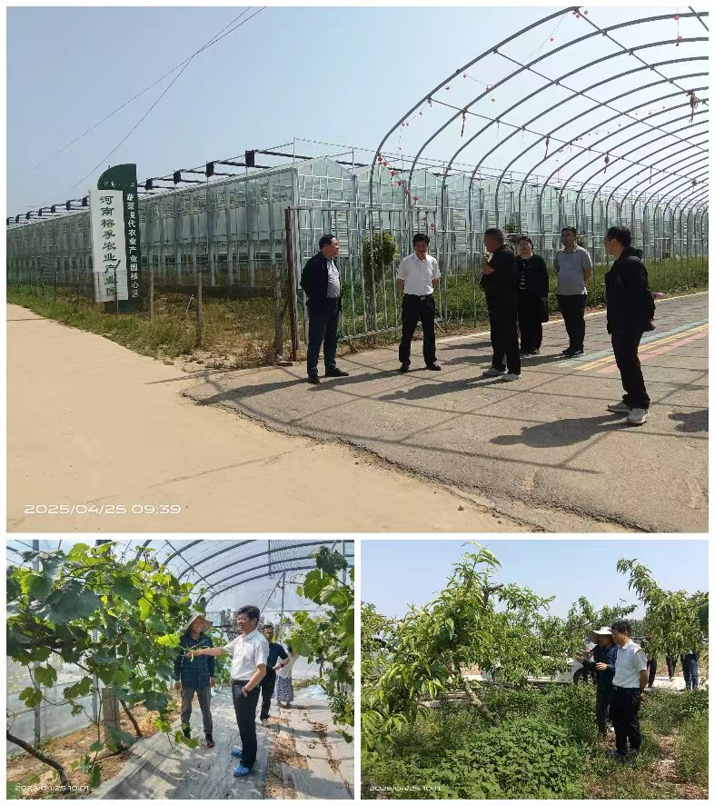 郑先波一行抵达产业园核心区后,先实地考察了葡萄和桃种植基地。郑先波仔细查看葡萄的生长和坐果情况、种植品种及栽培技术应用情况,向现场技术人员详细了解病虫害防治、灌溉施肥管理等关键环节,对产业园在果树规模化种植和标准化生产方面所取得的成效给予充分肯定,并针对部分果树生长中存在的问题提出了专业的改进建议。