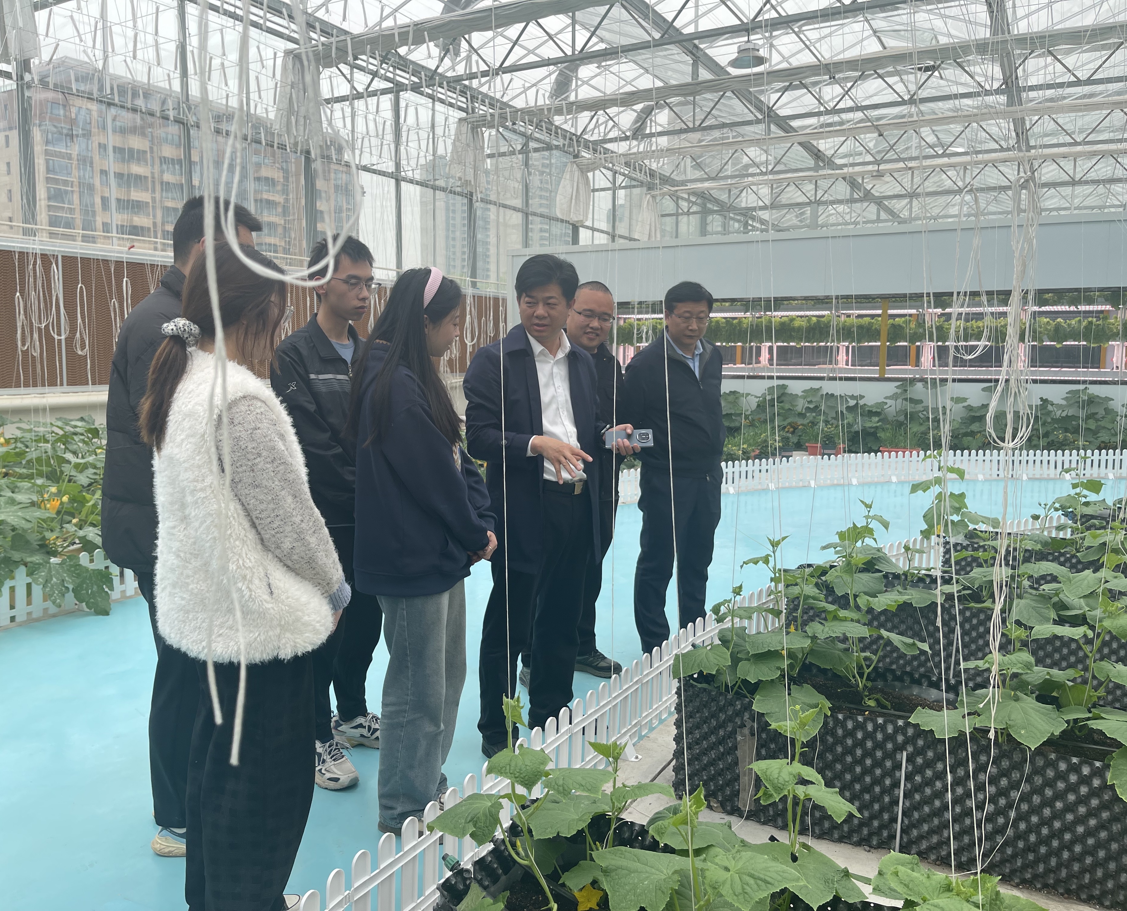 技术支撑的中原农谷智能温室,慰问看望了实习生,详细了解大家到实习基地这段时间的学习、生活和工作情况,并对学生实习期间的安全问题进行了强调。在参观交流过程中,双方就产学研合作、人才培养、技术支持等方面进行了深入探讨,共同探讨了合作的方式和机会。