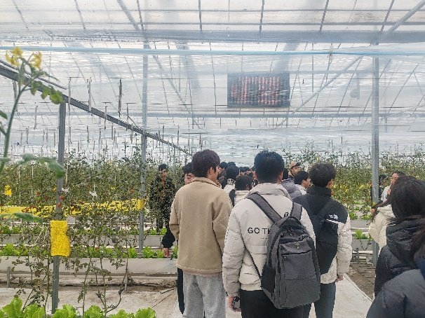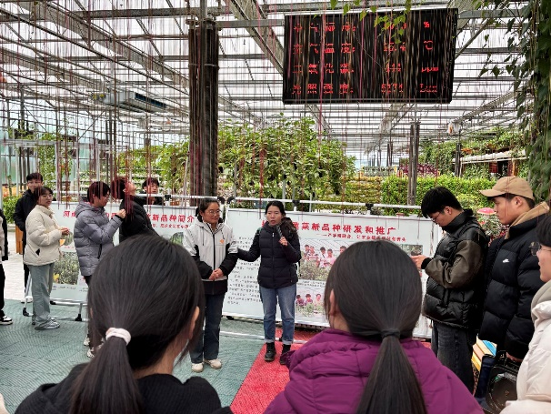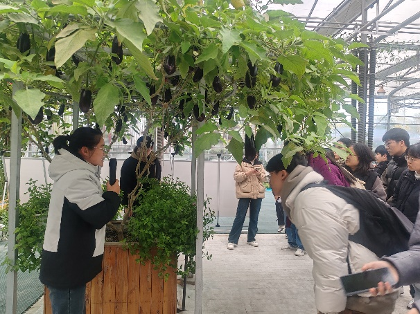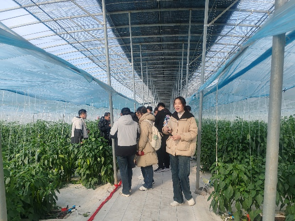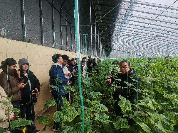 下午,师生们来到河南农大扶沟蔬菜研究院。研究院内,智能化连栋大棚、日光温室和外保温塑料大棚错落有致,各种蔬菜瓜果长势喜人。在玻璃连栋温室内,学生们亲眼目睹了不同模式的无土栽培,以及多种多样的栽培品种,深刻体会到了现代农业技术的先进性与实用性。研究院的工作人员还详细讲解了农业园区的布局与运营管理方式,让学生们对农业园区的规划与管理有了更加直观和深入的理解。