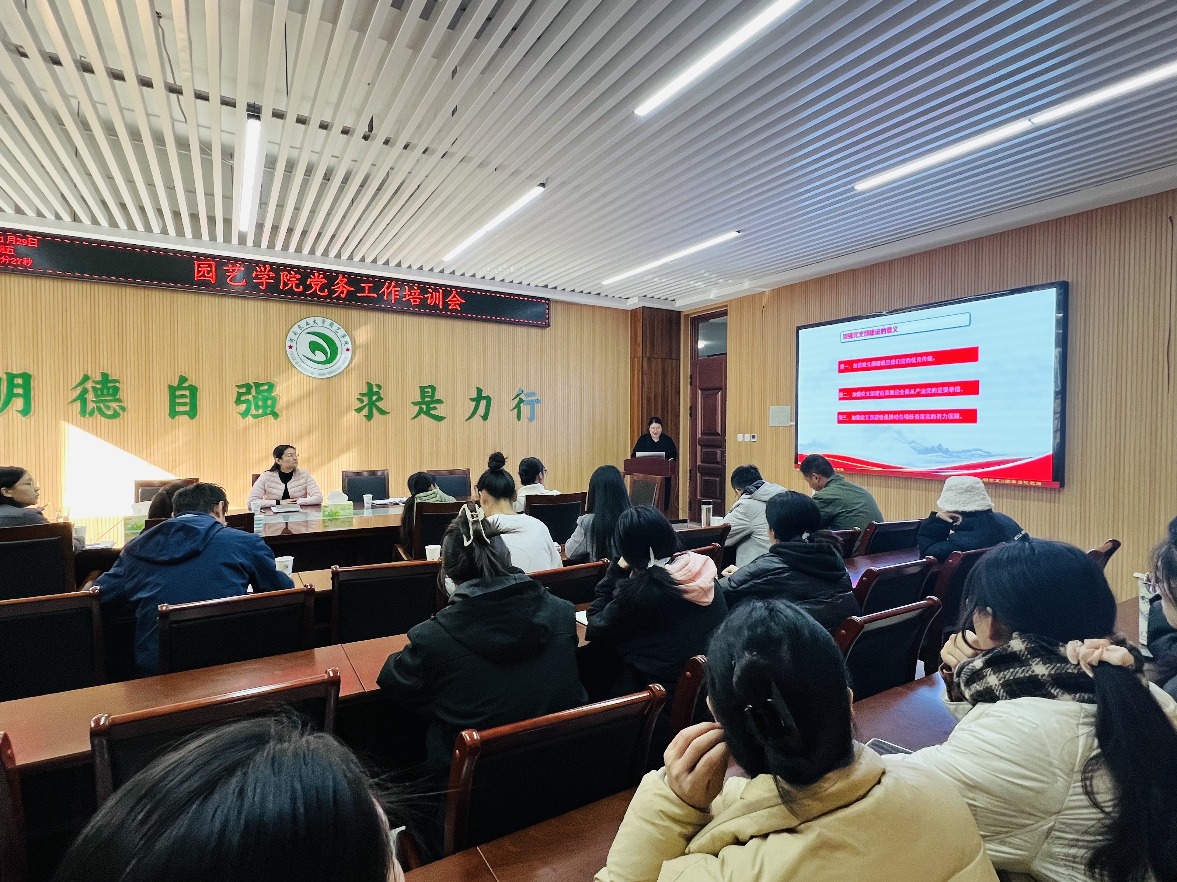11月29日,学院在龙子湖校区力行楼北215会议室召开学习党的二十届三中全会精神,准确把握国家总体安全观专题报告暨党务工作培训会。学院党委书记秦素玲主持会议并作专题报告。学院党委副书记余果、学院教工党支部及学生党支部全体委员参加会议。
