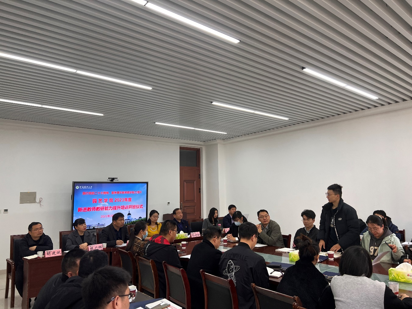 孙守如院长致欢迎辞,并对各位新进教师的加入表示欢迎。他指出教师这份职业大到社会、小到个人家庭都是非常受重视和尊重的,因此新进教师要以高标准要求自己并通过不断地学习来提升个人的能力素养,希望各位新进教师能积极融入园艺大家庭,肩负起创建世界一流农业大学的使命。