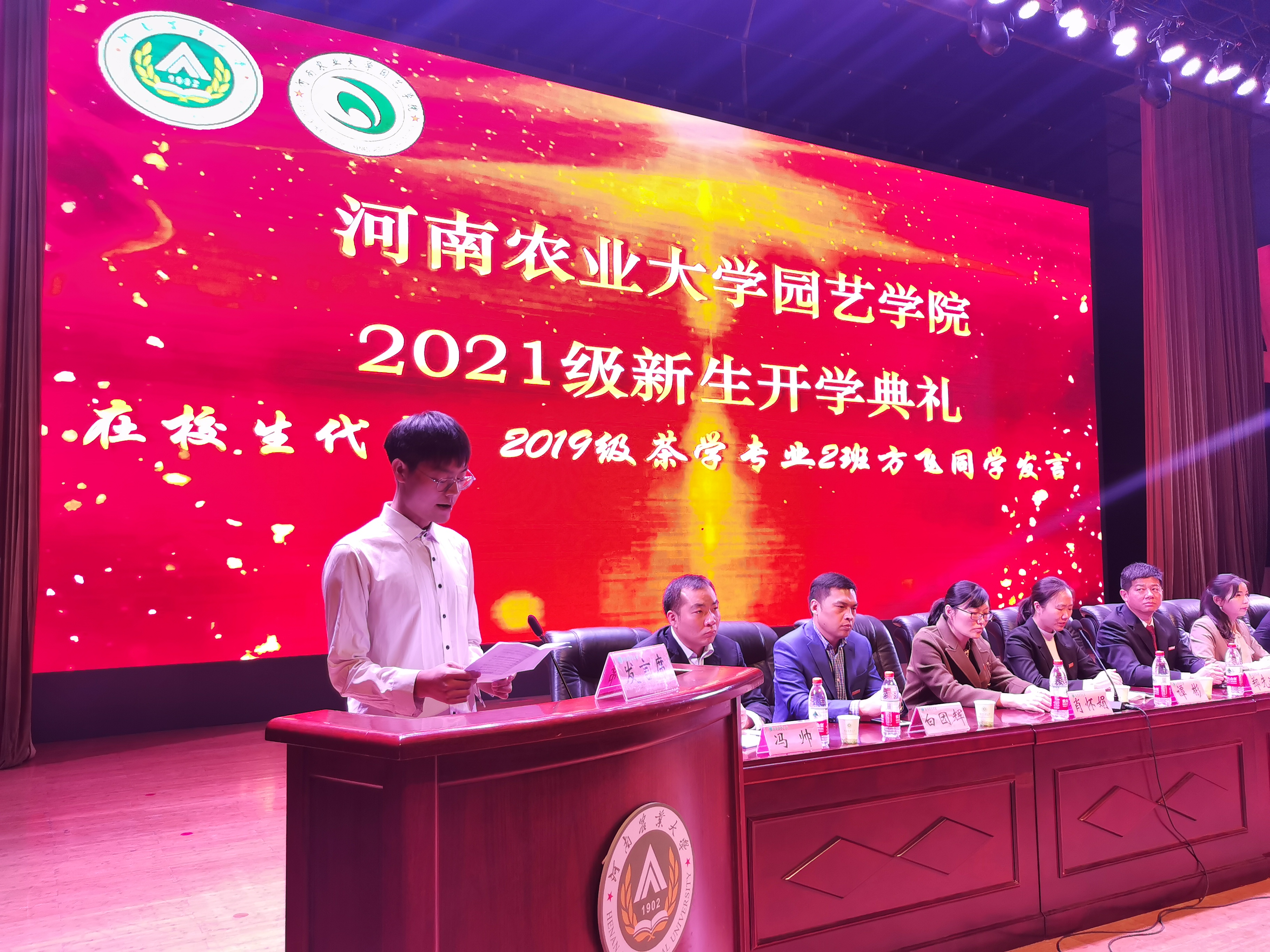 学院果树系教师焦健博士代表教师发言,鼓励同学们能自律克己,勤奋刻苦,用努力浇灌梦想。2019级茶学专业2班学生方飞代表在校生分享了自己的大学经历,鼓励同学们提前做好规划,积极参加社会实践,不断提升个人综合素质。2021级园艺3班刘旭作为新生代表进行了发言,表达了对大学生活的美好憧憬,并作出庄严承诺,坚持学习的初心和热情,努力成为有学识、有担当的新时代青年。