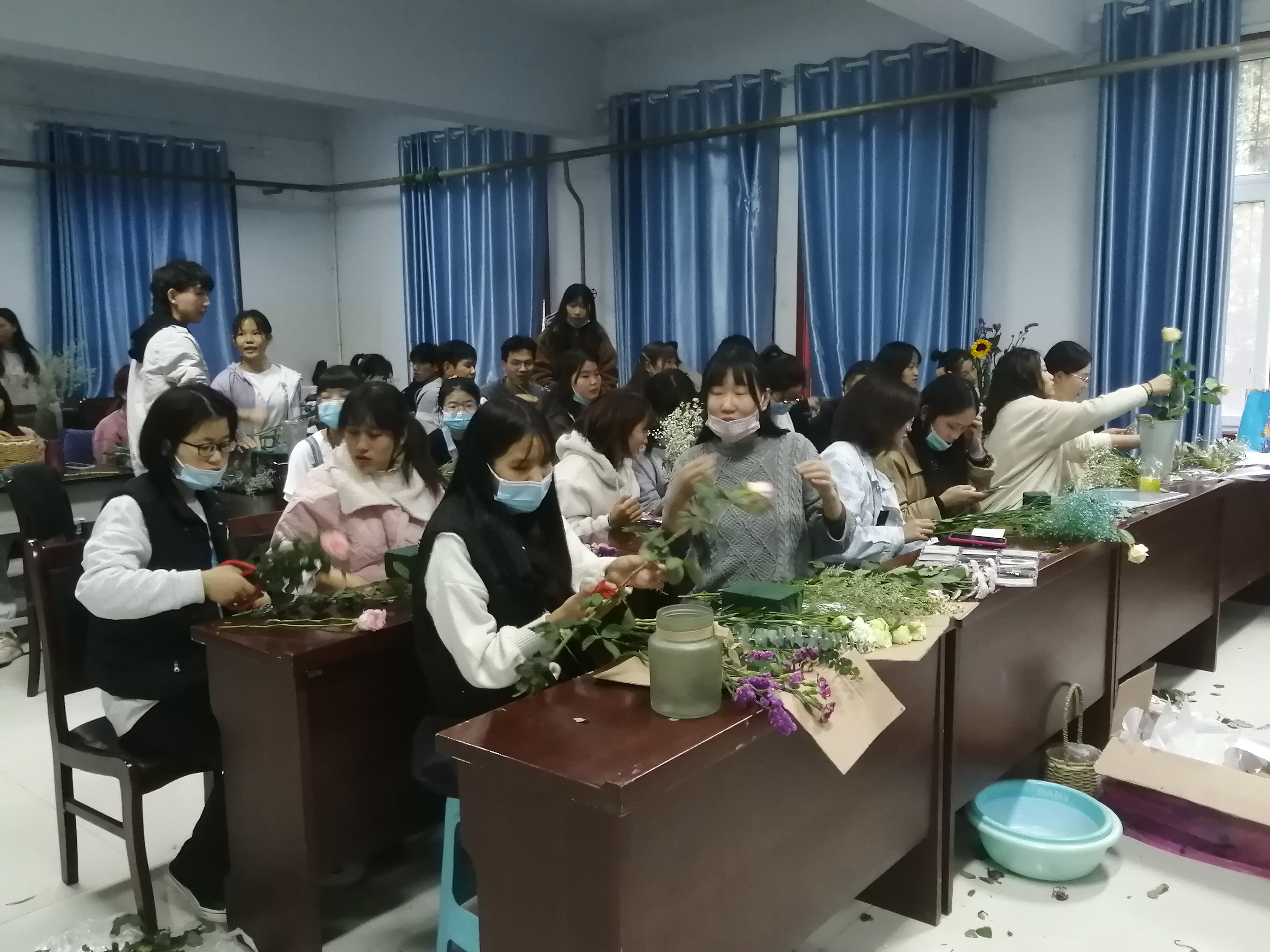 10月19日,色漫天堂 在文化路校区举办插花艺术比赛,参赛者由学院的花艺爱好者组成,有26组选手参加了此次比赛。色漫天堂 孟更、豆俊岭、王永、高艳娜等4位教师担任现场指导老师,对有关插花的知识、要求和基本流程进行了赛前培训。