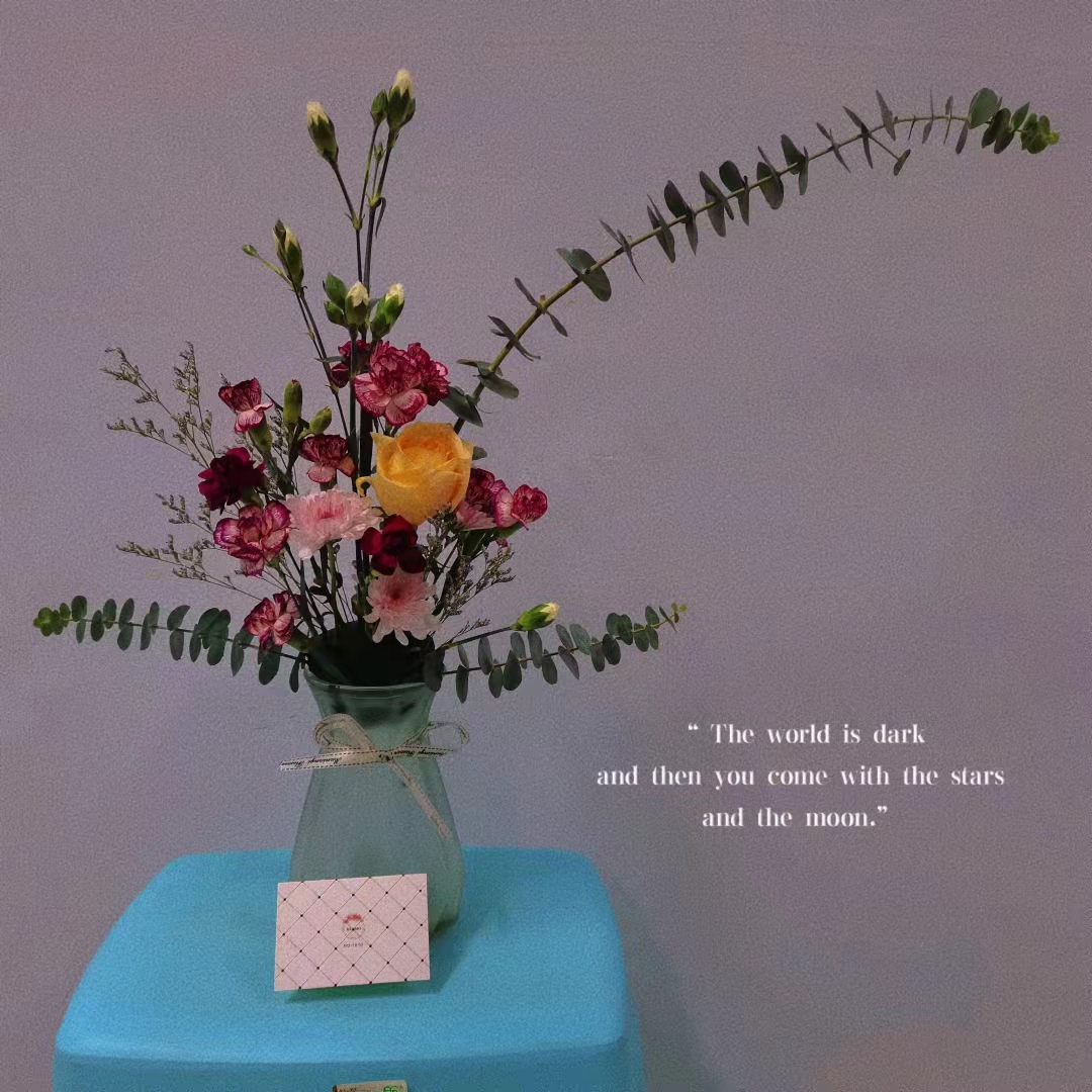同学们在花材的选择、造型和立意上都下了功夫,他们构思奇特,将月季、洋桔梗、满天星、勿忘我、尤加利叶、向日葵、多头菊等不同的花材巧妙的搭配,组合出《秘境》、《悸动》、《缱绻》、《漫天星河》、《春日序》等各种不同的作品。插花作品在文化路校区2号楼大厅进行展示,引得许多花艺爱好者驻足观看,赢得了大家的一致好评。同时,花艺作品还在微信平台上展示,进行网络投票评选。