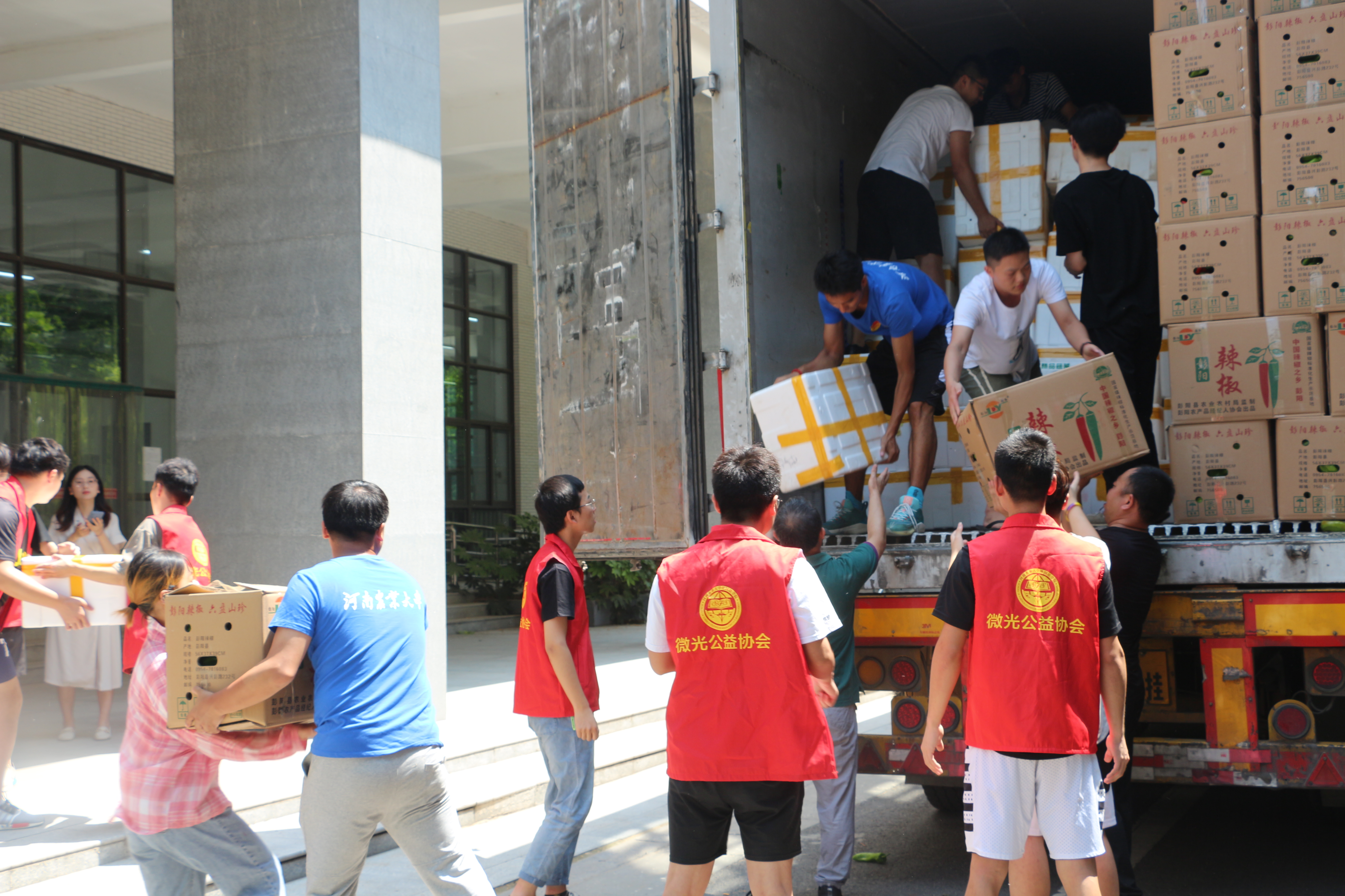 宁夏彭阳县农业农村局高级农艺师惠浩剑,彭阳县红河镇常沟村党支部书记王爱彬等一行4人,带着宁夏人民对河南人民的深情厚谊,经过连夜驱车奔波,将宁夏爱心企业和彭阳县农户捐赠的满满一卡车蔬菜运送到我校。校团委组织青年突击队、青年志愿者服务队经过三个多小时的紧张工作,终于将全部蔬菜卸货到指定地点。洪水无情,人间有爱,在学校防汛救灾的紧要关头,宁夏人民千里送菜,给予了全校师生战胜困难的坚定信心。(撰文/冯帅 审核/毛会坡 发布/冯瀚瀚)