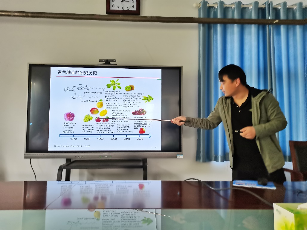师生做了题为“茶树香气物质糖苷化机制及其生理功能”的学术报告,由茶学系主任贺巍主持。