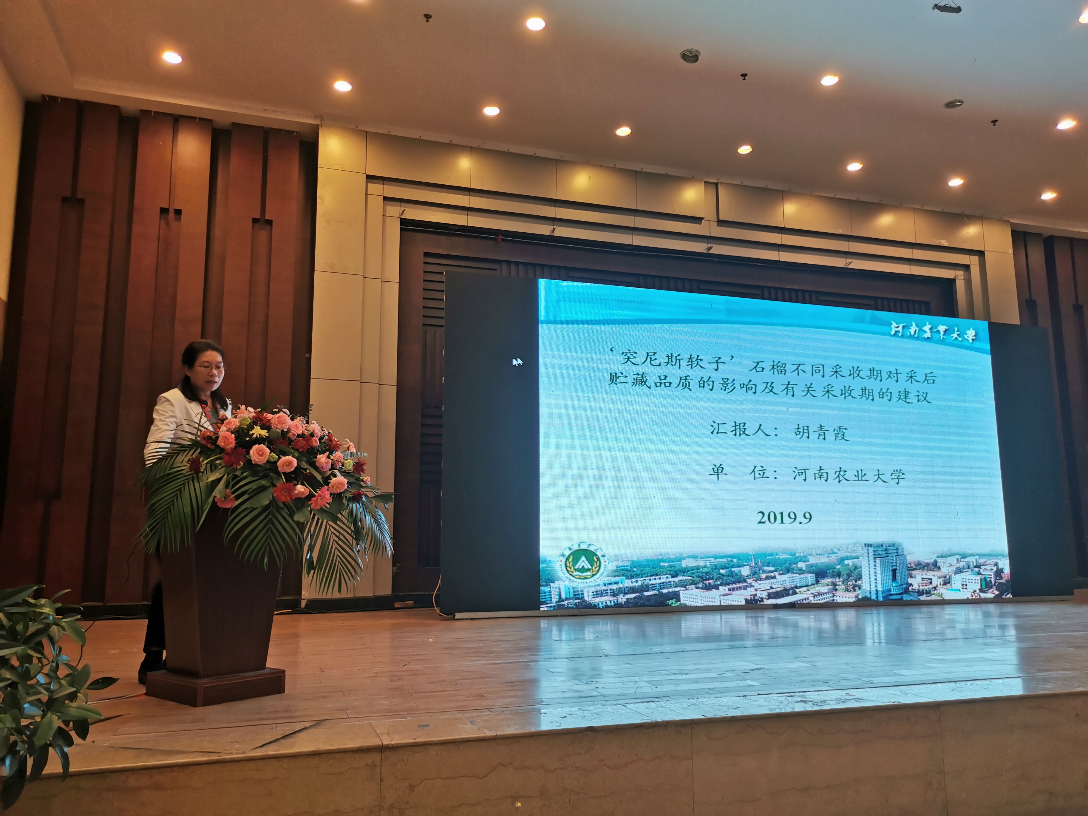 会议上学院胡青霞副教授进行了石榴采后保鲜相关的学术报告。本次博览会胡青霞副教授《鲜切“突尼斯软籽”石榴籽粒保鲜研究》论文及万然博士《“突尼斯软籽”石榴自交一代颜色性状分离及形成基础研究》论文分别荣获第三届石榴博览会论文一等奖和二等奖。