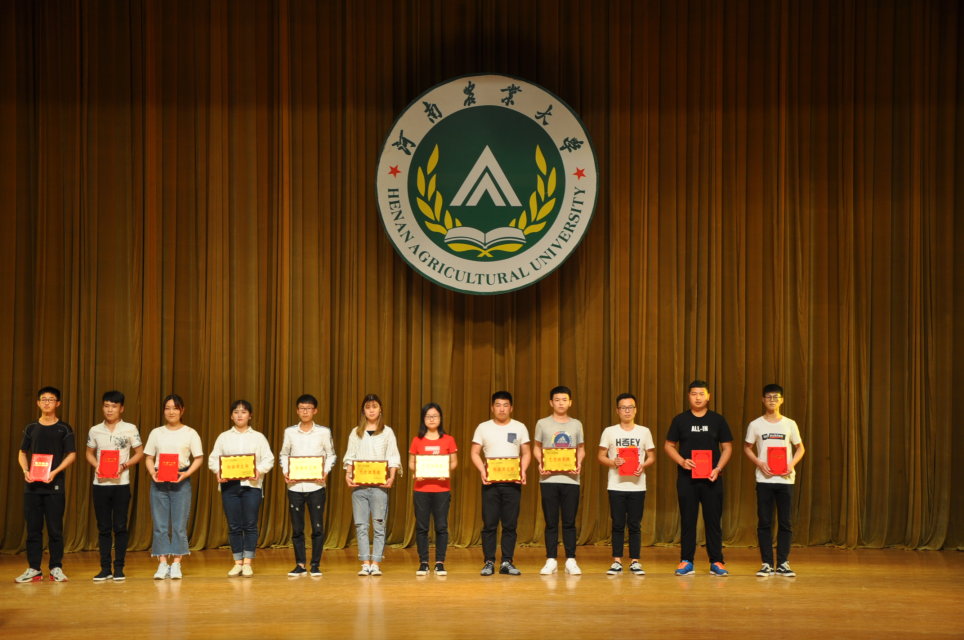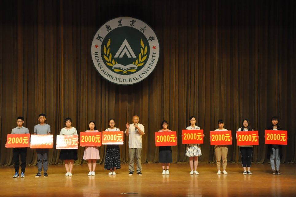 期间,先进集体代表、先进个人代表、基础文明创建先进个人、优秀寝室长代表等纷纷登台接受表彰。在昂扬欢快的旋律声中,荣获本年度“张绍文励志”奖学金的10名研究生和“宜阳金泉”企业奖学金、“桐柏丹峰”企业奖学金、“河南志宇”企业奖学金、“辰夏”企业奖学金60名本科生代表分别登台领奖。退休教师张绍文教授、设施工程系王吉庆教授、茶学系赵仁亮博士、河南志宇高效农业发展有限公司负责人、河南辰夏实业集团负责人分别登台为获奖学生颁奖。本次荣获“张绍文励志奖学金”和各类企业奖学金的学生共计70人,奖励均为2000元/人。