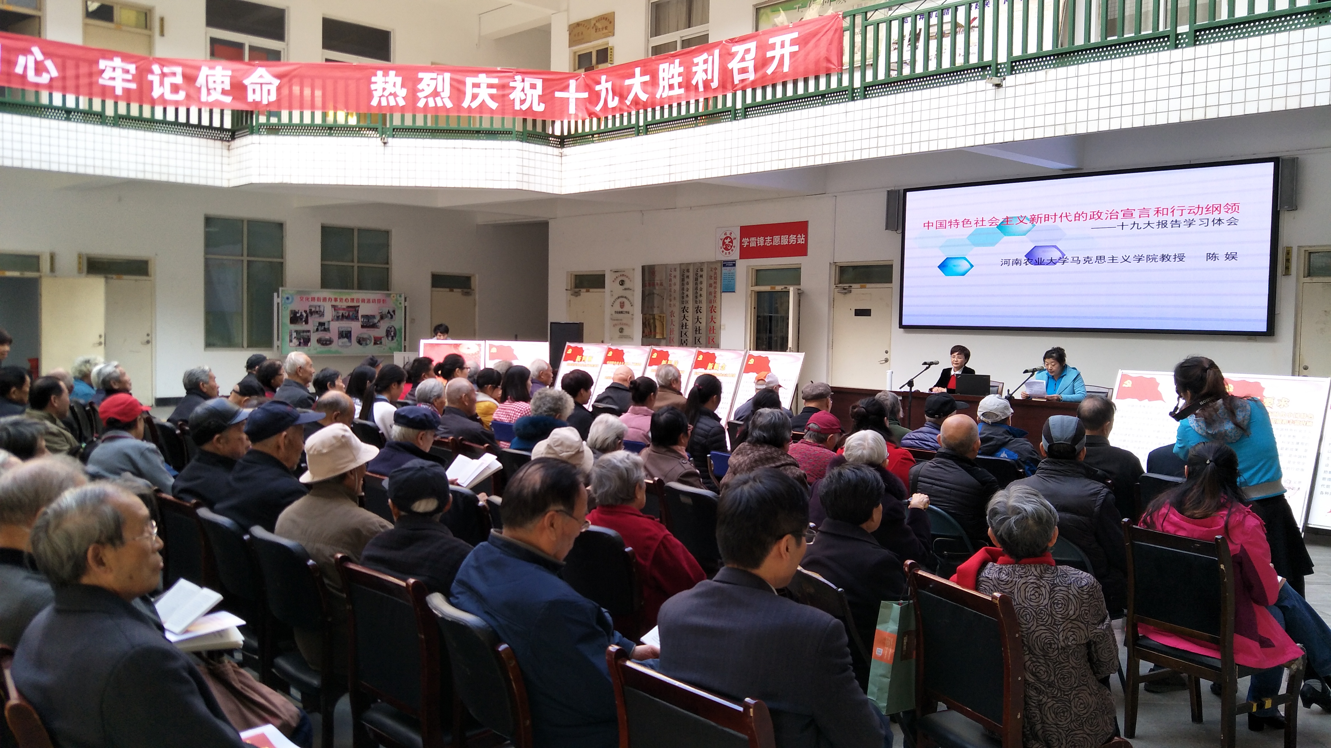 活动中,陈娱院长从“过去五年的工作和历史性变革”、“新时代中国共产党的历史使命”、“新时代中国特色社会主义思想和基本方略”三个方面为大家解读了十九大报告中重要内容。纵然寒风瑟瑟,我院同学们和老党员们也依旧听得认真。陈院长一个多小时的解读报告使参加活动的同学们从中受益匪浅,令同学们明确了我国当下的国情、未来的道路方向以及社会主要矛盾的转变,认识到了新时代赋予青年一代新的使命。