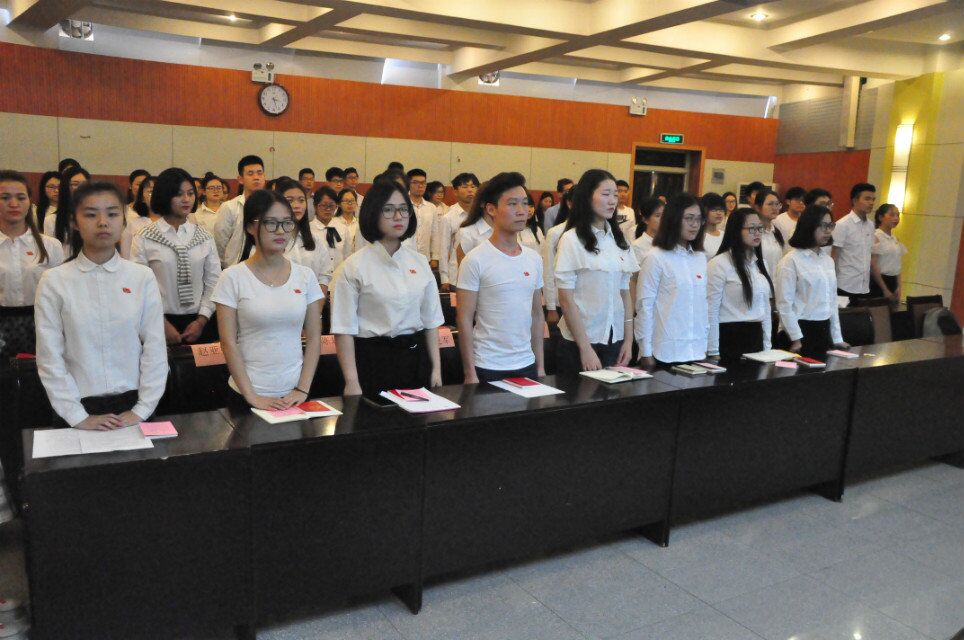 于文化路校区一百人报告厅举行党员宣誓大会暨2017届毕业生党员最后一堂党课。院党委书记耿超明、党委副书记侯亚兵、团委副书记冯帅、党委组织委员黄婉珺、辅导员陈桃出席大会,毕业班党员及全体在校党员参加。
