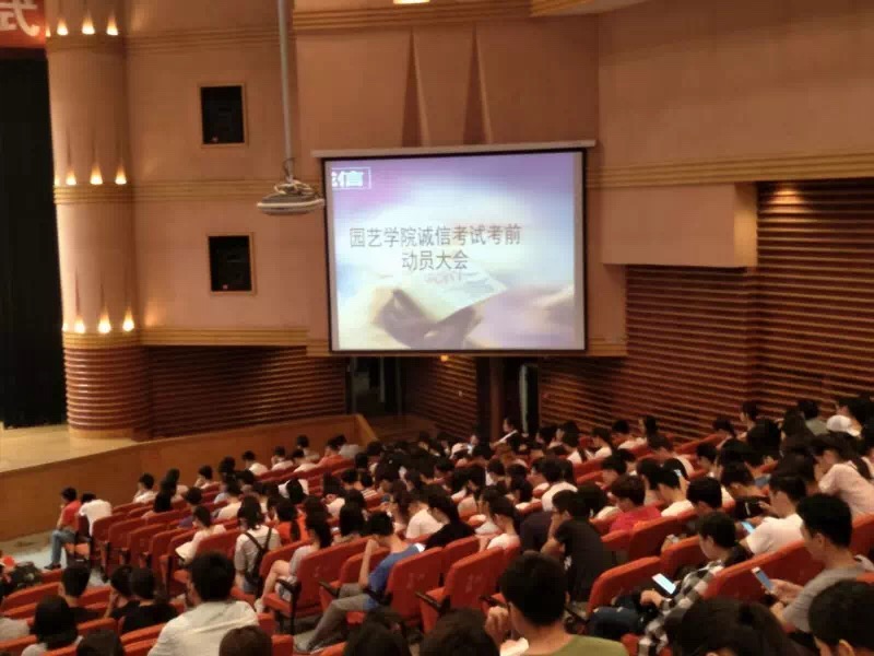 于文化路校区千人大礼堂召开诚信考试考前动员大会。果树系主任郑先波主讲,院党委副书记侯亚兵和团委老师出席,15、16级全体学生参加。