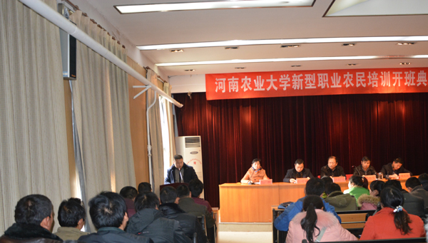 第四批新型职业农民培训开班典礼仪式,院党委耿超明书记出席了仪式并代表学院致欢迎辞,副院长马长生研究员、蔬菜系副主任胡建斌副教授参加了典礼仪式,果树系副主任郑先波副教授代表教师讲话,郑州买种种商务电子有限公司丁帅辉代表学员发言,参加本次典礼仪式的还有本次培训班相关管理人员以及110余名学员,仪式由院办公室主任陈广辉主持。