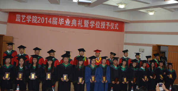 在300人报告厅举行2014届毕业典礼暨学位授予仪式,院领导班子及学位委员会成员在主席台就坐,全体教师和2014届毕业生参加大会,会议由院党委书记耿超明主持。