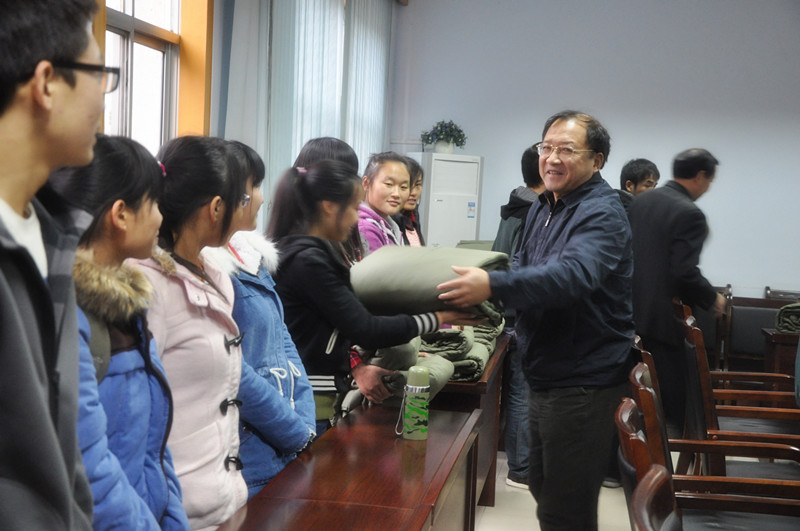 耿书记谈到,由于今年新生开学时间较晚,开学不久就已入冬,而许多同学离家太远,没有准备过冬的棉被,希望通过送温暖这一形式为同学们送上全院教职工生的关心与关怀。 在与同学们的交谈中,耿书记询问了同学们的学习和生活情况,嘱咐他们遇到困难一定及时向老师、向学院反映,学院会尽力帮助同学们排忧解难。孙院长叮嘱大家,在刻苦学习的同时要注意身体,同时不要忘了牵挂家里,要时常给家里打电话报平安。随后,领导和老师将被子送到大家手上,同时将温暖传递到大家心头。
