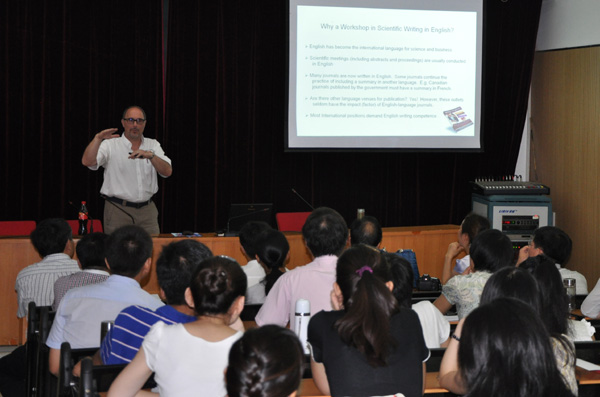 随后Robert N. Trigiano又分别对学术论文的摘要、前言、材料与方法、结果分析、讨论和结论的撰写要点进行了详细介绍,并列举出大量案例来说明英语论文写作中特有的方法和技巧,指出母语为非英语的作者经常出现的错误。同时,Robert N. Trigiano对科技论文的提交细节、cover letter的撰写、审稿过程和修改方法等分别进行讲述,让我校师生对高水平论文发表的所有环节和细节有全面的了解和新的认识,他的讲解风趣幽默,内容丰富,注重细节,针对性强,吸引了大量研究生前来学习和咨询,听过讲座的师生普遍反映受益匪浅。