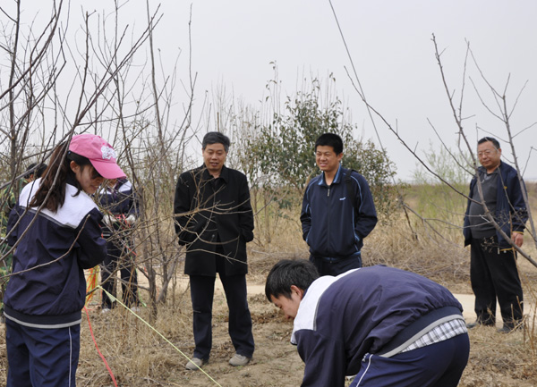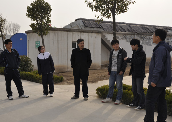 学生进行教学生产实习的30余个基地,条件参差不齐,有些基地甚至连手机信号也不通畅,这让几年来一直在繁华便捷都市里学习和生活的大学生们在心里上一时难以接受,调侃、叹息、抱怨之声在网络微博上时有出现。在这学生心理十分不稳定的关键时期,院长冯建灿教授带领果树系副主任郑先波副教授、团委副书记郭武轲等一行,于3月14日到天河湾生态农庄、郑州毛庄绿园实业有限公司、郑州市黄河农牧场等基地看望生产实习的学生和指导老师。