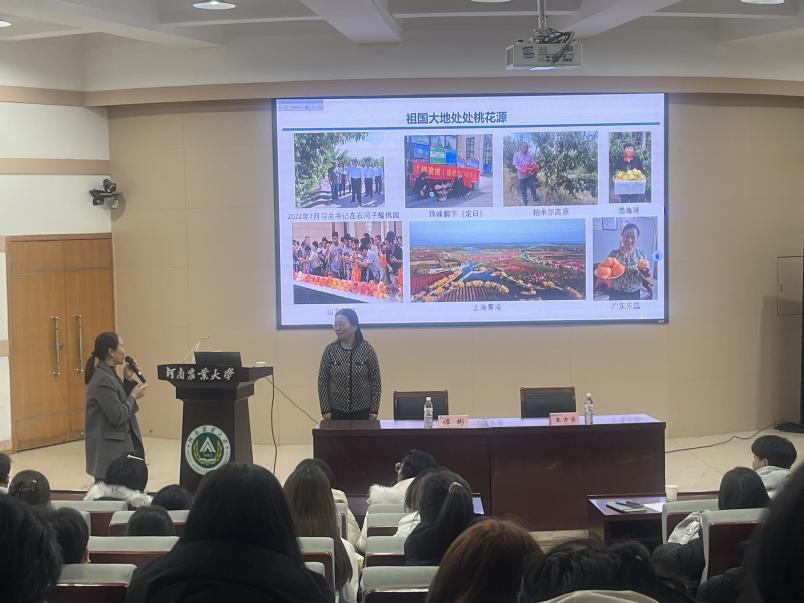 于文化路校区300人报告厅举办了以“逐梦桃花源”为主题的《现代园艺导论》专题教学。本次课程特邀中国农业科学院郑州果树研究所王力荣研究员担任主讲人,报告会由副院长谭彬主持。