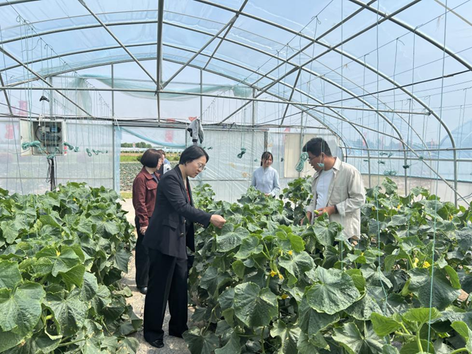 在河南欧兰德种业有限公司新品种展示基地(中原种业科技园),郭娟一行实地参观了4蔬菜新品种展示田、智能温室育苗棚及实习生生活环境,详细了解学生实习岗位、工作内容与生活保障情况。团队沿着田间观摩步道,逐一查看黄瓜、番茄、皱叶菜、马铃薯等多个蔬菜新优品种的长势与展示情况,现场听取基地负责人关于品种选育、栽培管理、抗病性鉴定等实习环节的介绍。