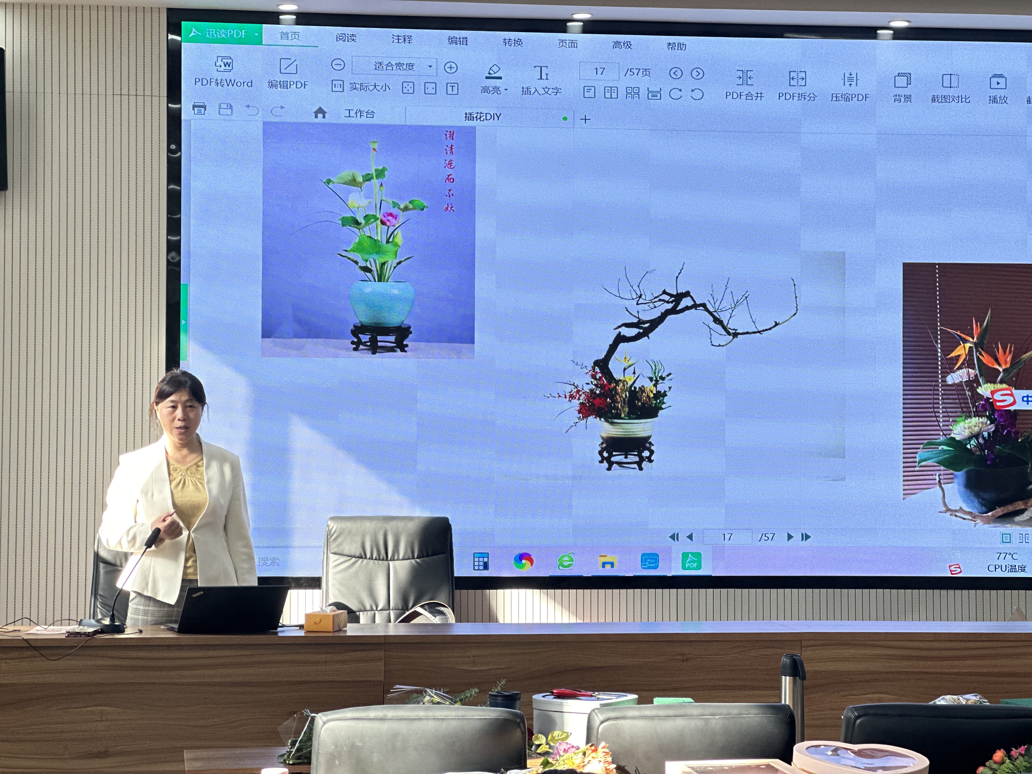 讲座结束后,进行了“插花DIY”活动,“巧手插花展风采,花香四溢绽芳华”。学院观赏园艺系的王献教授现场为大家科普了花艺小知识,介绍了插花中西方和古今的差异,不同的花器,以及插花的技巧方法等,之后观赏园艺系的老师们进行现场演示操作,并为职工逐一指导,现场氛围热烈而温馨。