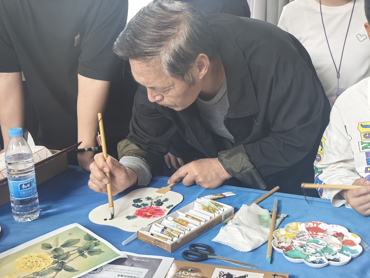 花语协会的同学们以笔为媒、以扇为介,将盛开的月季花勾勒于漆扇之上,细腻的笔触与斑斓的色彩交织,让传统漆艺焕发新生。活动现场吸引众多游客驻足观赏并参与其中,同学们表示,此次创作不仅是艺术实践,更是对传统文化的创新性传承,让非遗之美融入现代生活。