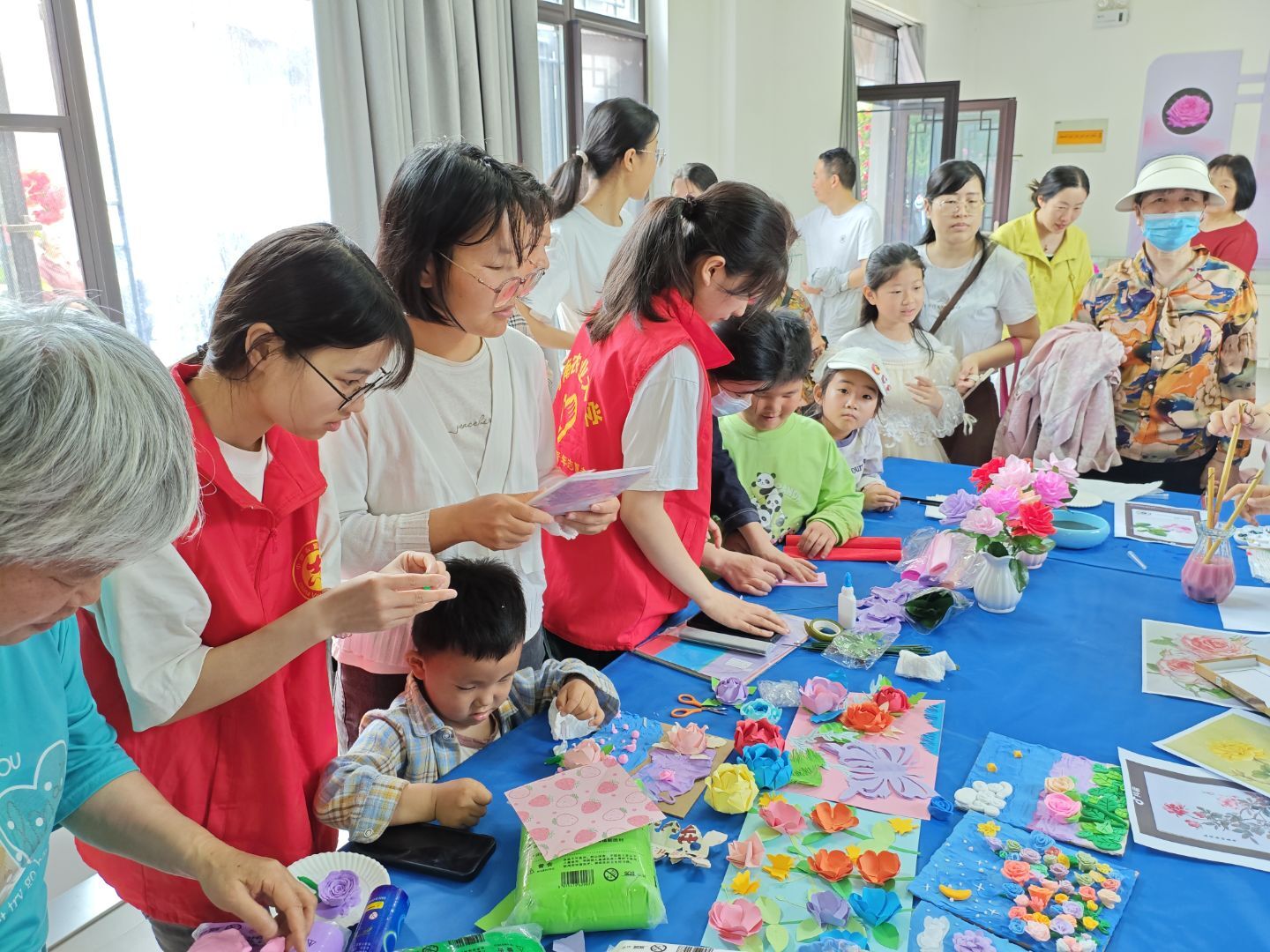 志愿者协会的志愿者们充分发挥自己的专业优势和创意才能,指导感兴趣的游客利用皱纹纸、彩纸、黏土、橡皮泥等材料,精心制作出了一朵朵栩栩如生的月季花,参与者通过创作的纸艺月季或黏土月季,感受动手乐趣。这些手工制品不仅形态逼真,色彩鲜艳,更展现了志愿者们对大自然的热爱和对月季文化的深刻理解。