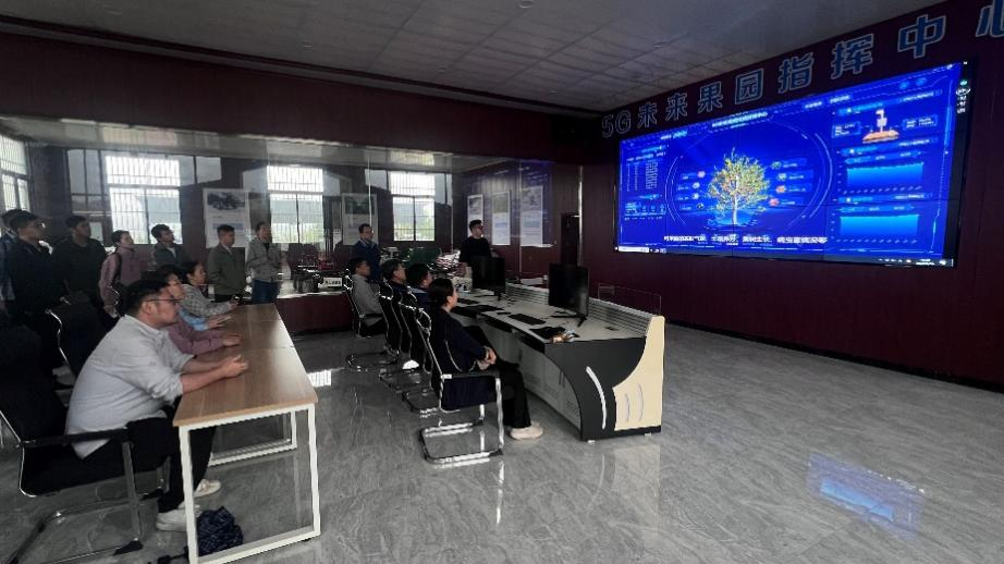 随后,师生们参观了高山5G未来果园体验中心。5G未来果园通过实时监测果园中的气象、土壤湿度、温度等数据,大大降低了人工作业的劳动强度,减少人工投入、提高作业效率,使苹果生产由劳动密集型产业转变为无人化、自动化、智能化高科技产业,实现果园5G数字化管理。
