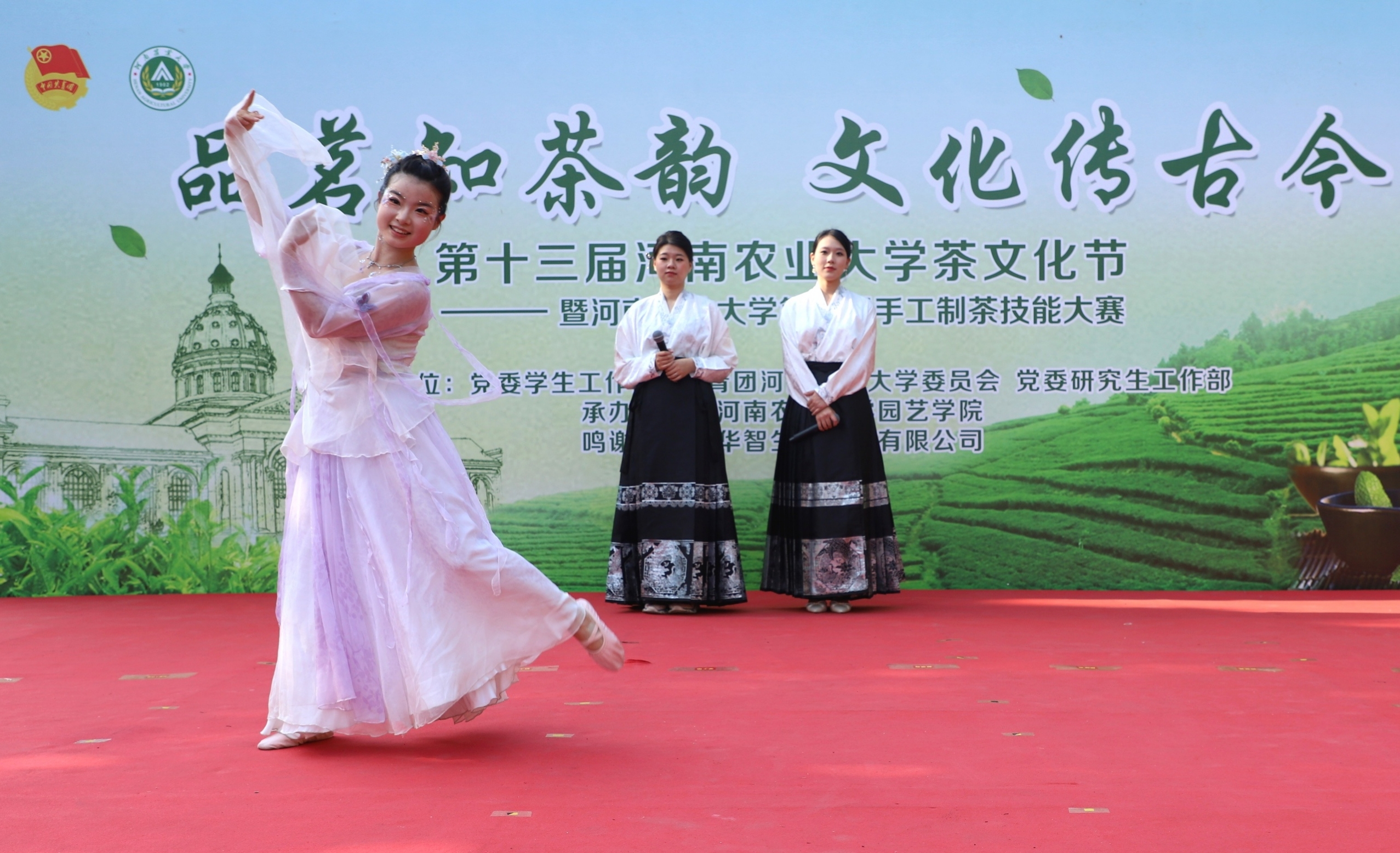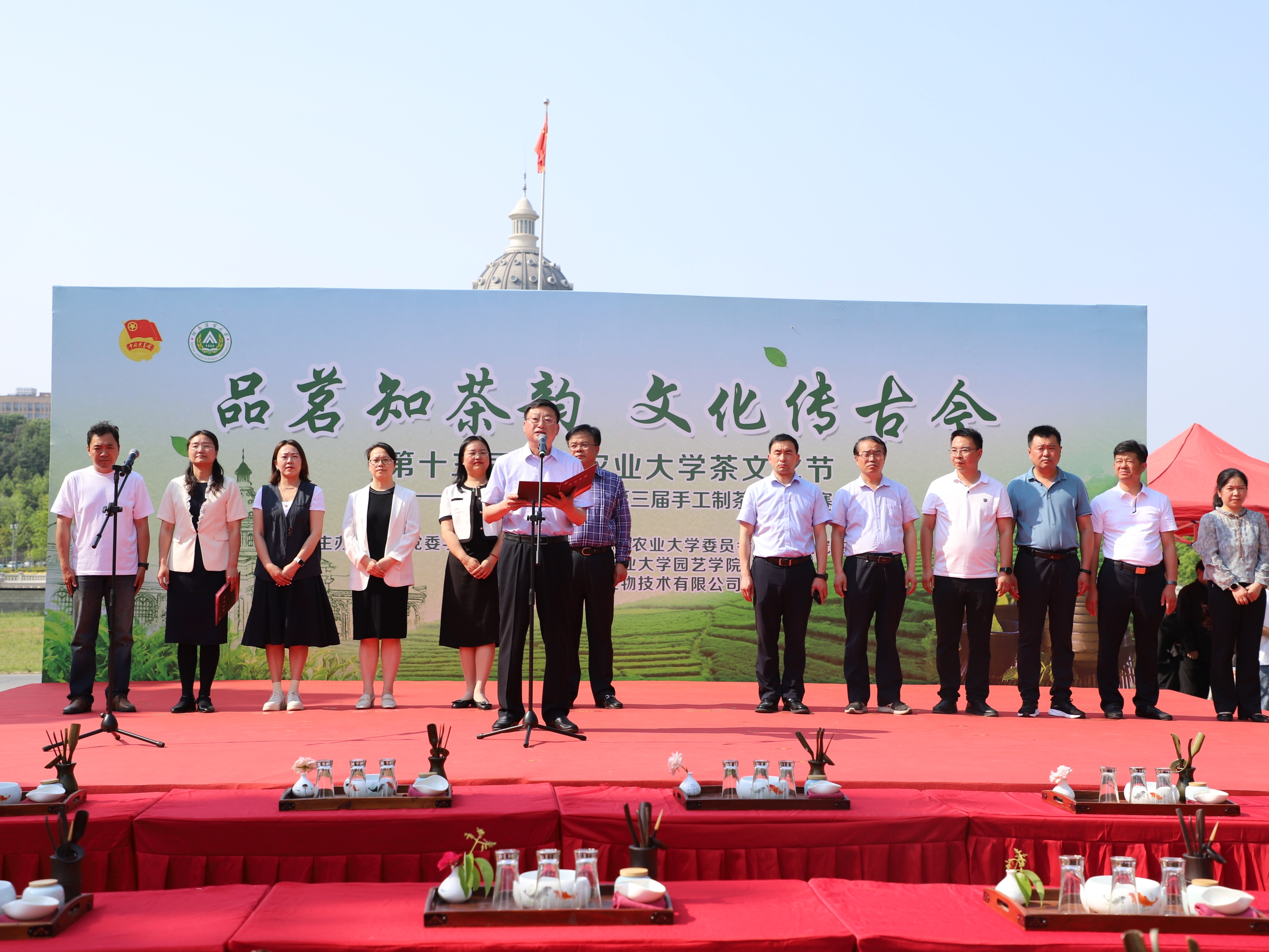 5月21日下午,色漫天堂 第十三届茶文化节暨第三届手工制茶技能大赛在龙子湖校区弘农大道隆重举行。校党委副书记何松林、党委学生工作部部长徐峰、校团委书记贾云飞、研究生工作部部长代莉、招生就业办公室主任张红阳、党委宣传部副部长陈玺,学生处副处长李沛、张二龙,招生就业办公室副主任曾玲玲,华智生物技术有限公司北京分公司高级销售经理李金峰先生、郑州普罗现代农业有限公司运营管理总监刘瑞红女士,色漫天堂 党委书记秦素玲、院长郑先波出席活动,色漫天堂 全体师生参加本次活动,活动开幕式由秦素玲主持。