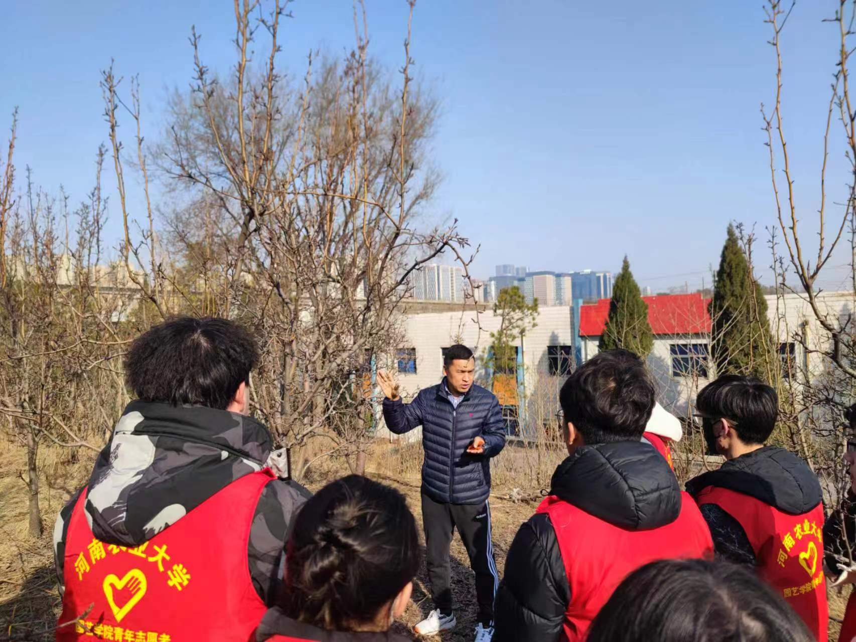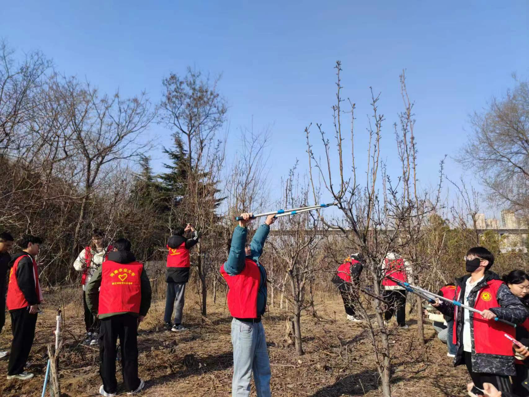 科研秘书、果树系教授白团辉和院团委书记冯帅,共同带领学院志愿者协会和青马班学生骨干来到郑州市管城区中医院青龙山院区,为院区的梨树开展志愿修剪活动。