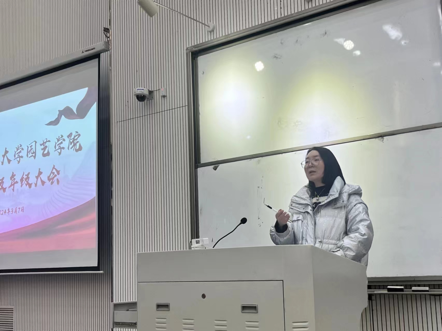 于龙子湖校区5CD1大教室召开2022级本科生年级大会。本次大会由2022级辅导员乔芳芳主持,2022级全体同学参加。