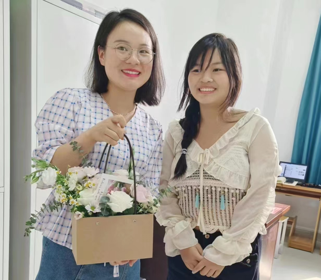 活动开始前,社团负责人提前采购了此次插花比赛所用素材,并从准备容器,选材修剪,修剪花材等内容,向参与活动的同学介绍了插花活动的准备工作。随后,10组参赛人员在协会人员指导下,挑选雏菊、玫瑰、洋桔梗等花卉,运用丰富的花艺技巧完成了制作、包装,并将祝福写在了个性卡片上以表达对老师们诚挚的祝福。最后,在各组的插花活动完成后,同学们把自己制作的花束送给了教师节当天还坚守在岗位上辛勤工作的老师,通过向老师们送上自己制作的花束,表达感激和敬意,希望老师工作顺利,身体健康。
