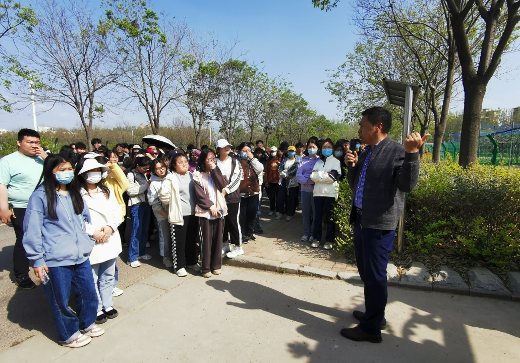 随后,在老师的带领下同学们前往国家梨产业技术体系郑州综合试验站,并由试验站郭鹏老师为大家讲解了我国梨产业技术体系的基本情况、建园过程、栽培模式等相关内容。在梨示范园区内,同学们近距离观察了连体式、省力化、“V”字形等不同现代化栽培模式,还详细讲述了果园生草、肥水一体化、黑地膜和地布、防霜机、减灾技术等现代化栽培技术。