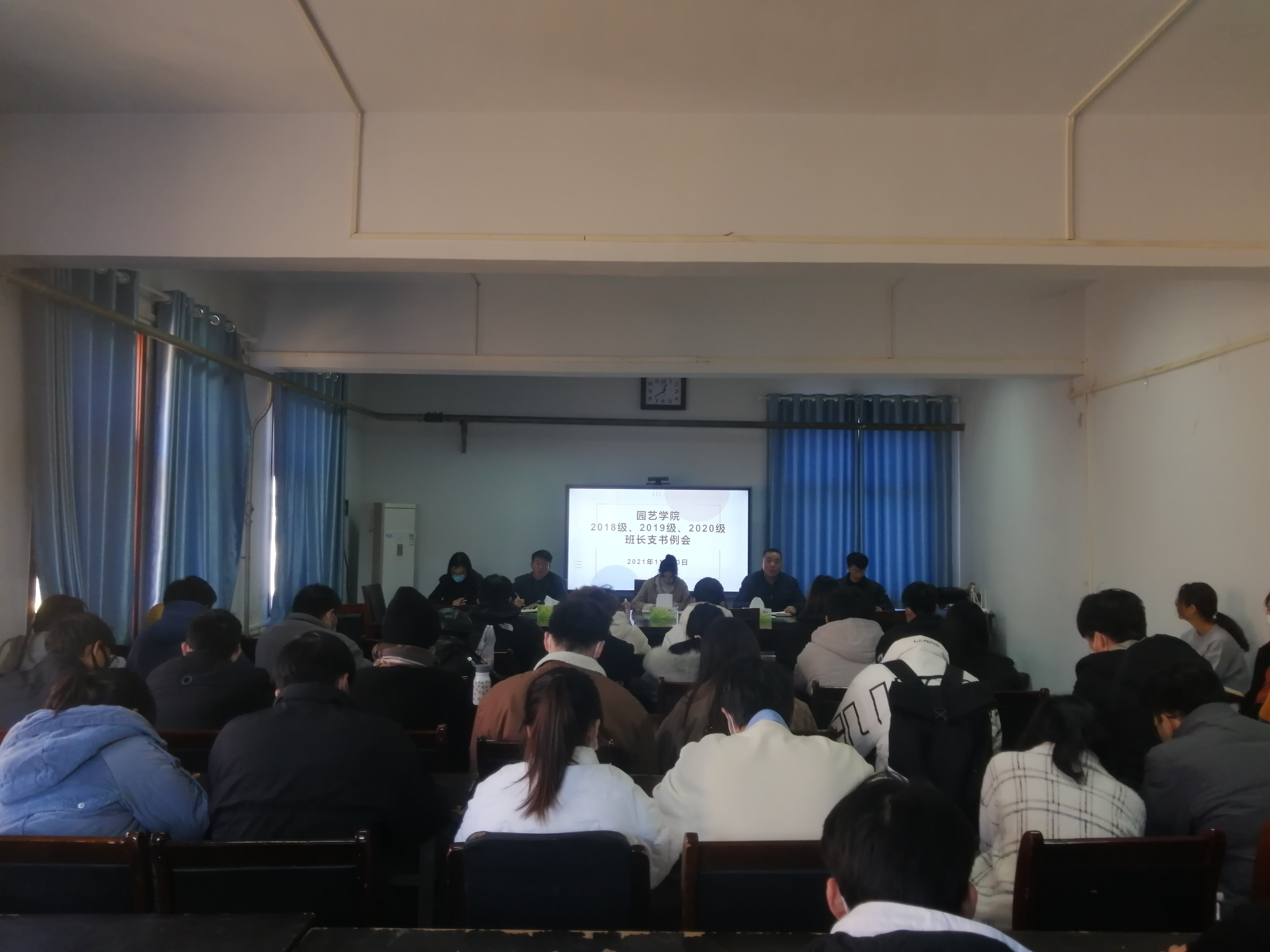 11月23日中午,色漫天堂 于文化路校区2号楼413召开全体班长支书会议。院党委副书记毛会坡、院团委书记冯帅、2019级辅导员蔡思嘉、2020级辅导员丁坤、2021级辅导员何畅及色漫天堂 全体班长支书参与本次会议,本次会议由色漫天堂 团委书记冯帅主持召开。