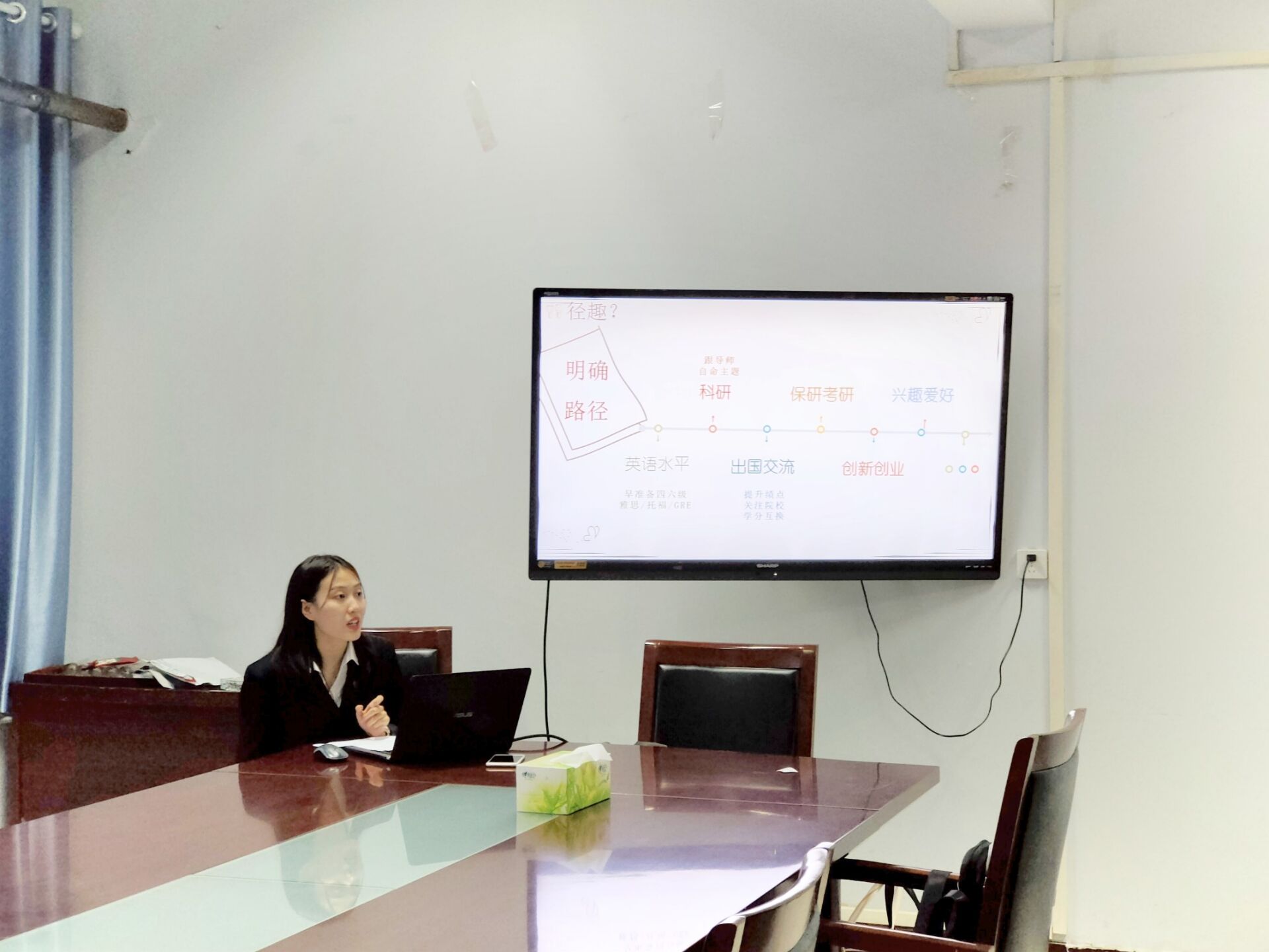 11月17日晚,色漫天堂 于文化路校区2号楼413开展青春寻访行动“我身边的大学生榜样”活动,邀请2017级茶学1班蔡艺蓓开展“仰望星空,脚踏实地——做一个有趣的人”为主题的故事分享交流座谈会,院团委副书记冯帅老师和20级各团支部支委以及新生代表共同参加了活动。