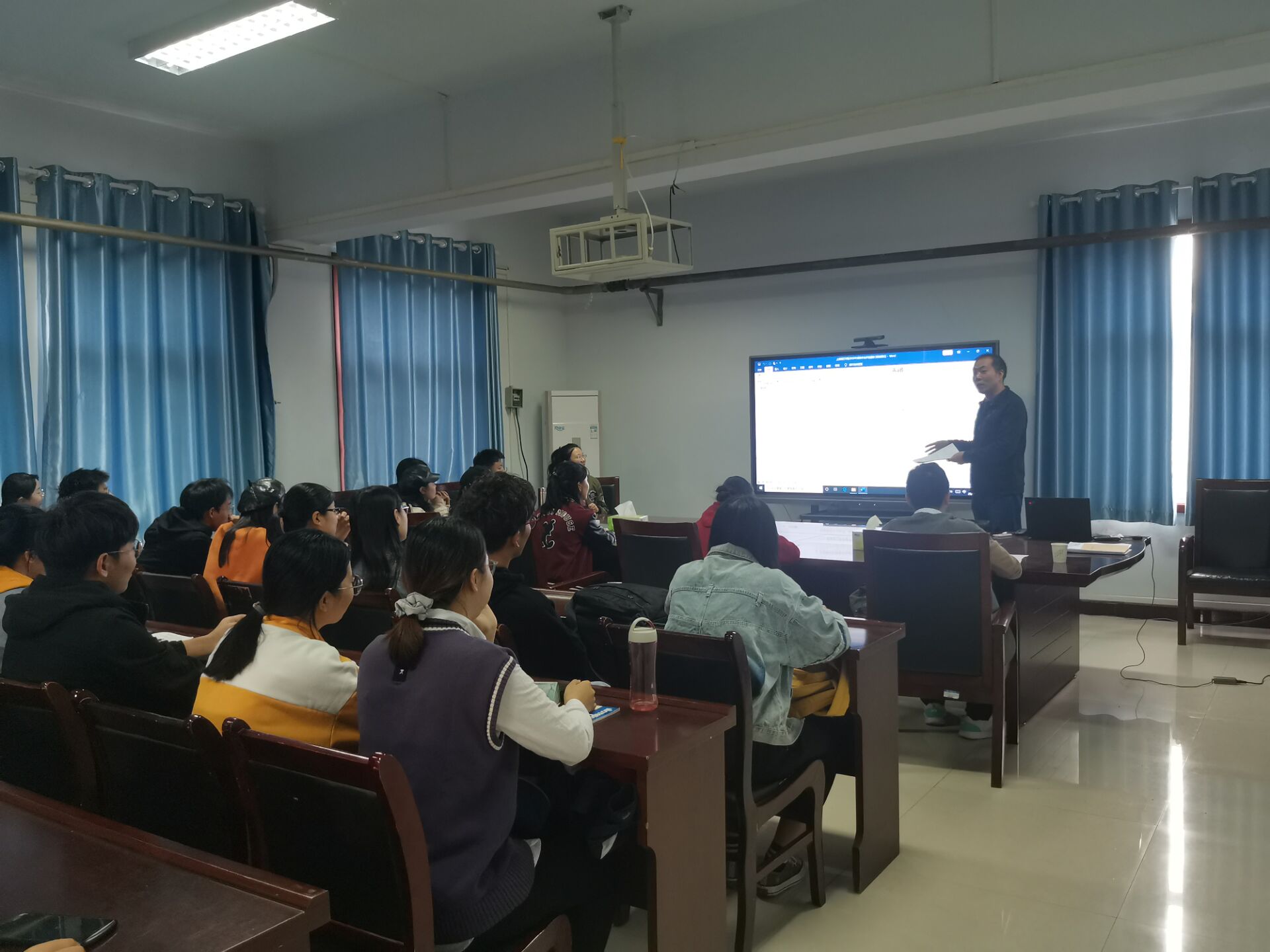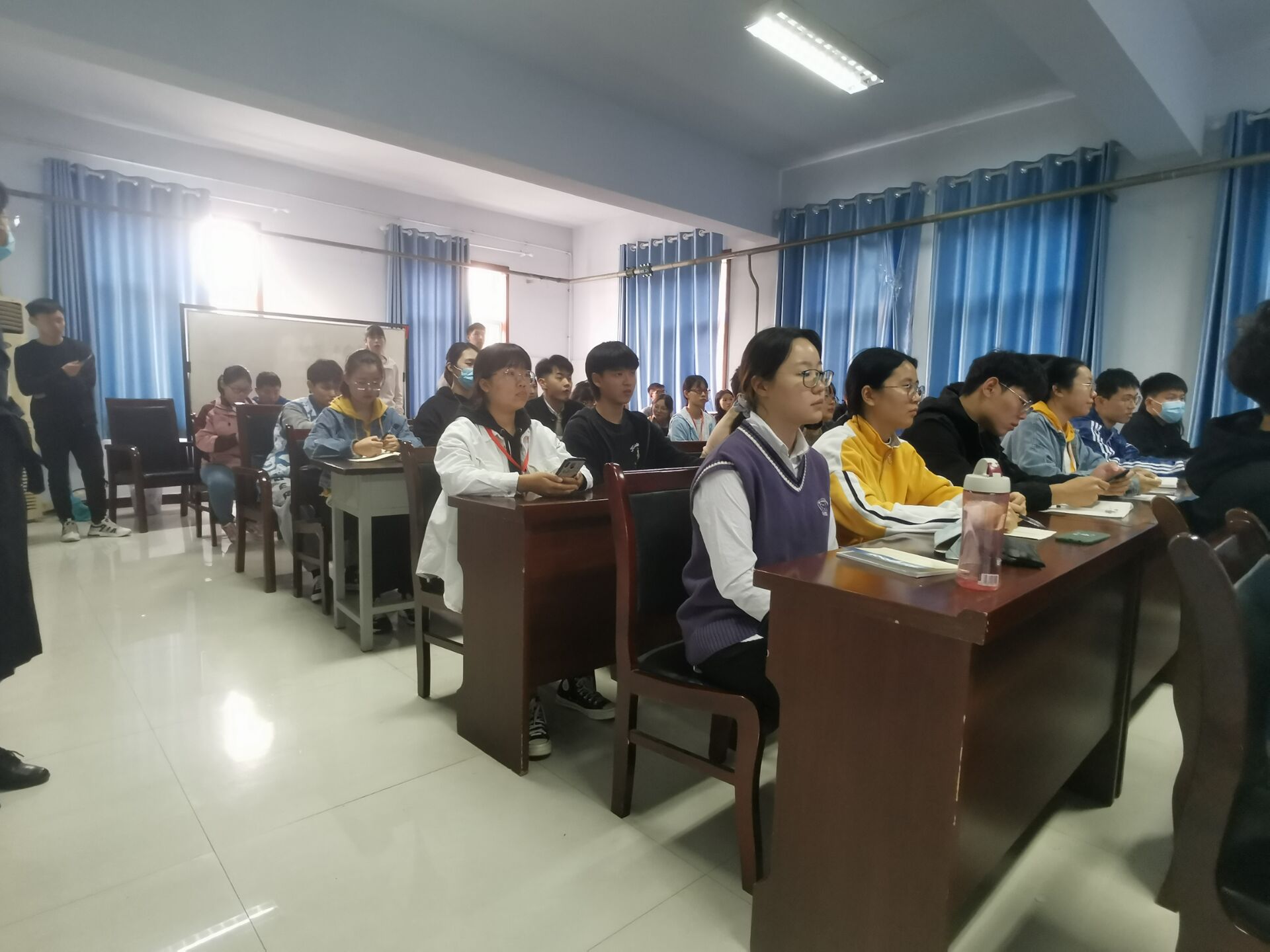 020年本科生奖助学金评选工作会。学院17级辅导员冯帅老师、18级辅导员陈桃老师、19级辅导员黄婉珺老师出席会议,17、18、19级各班班长支书及20级助理班主任全部参加。