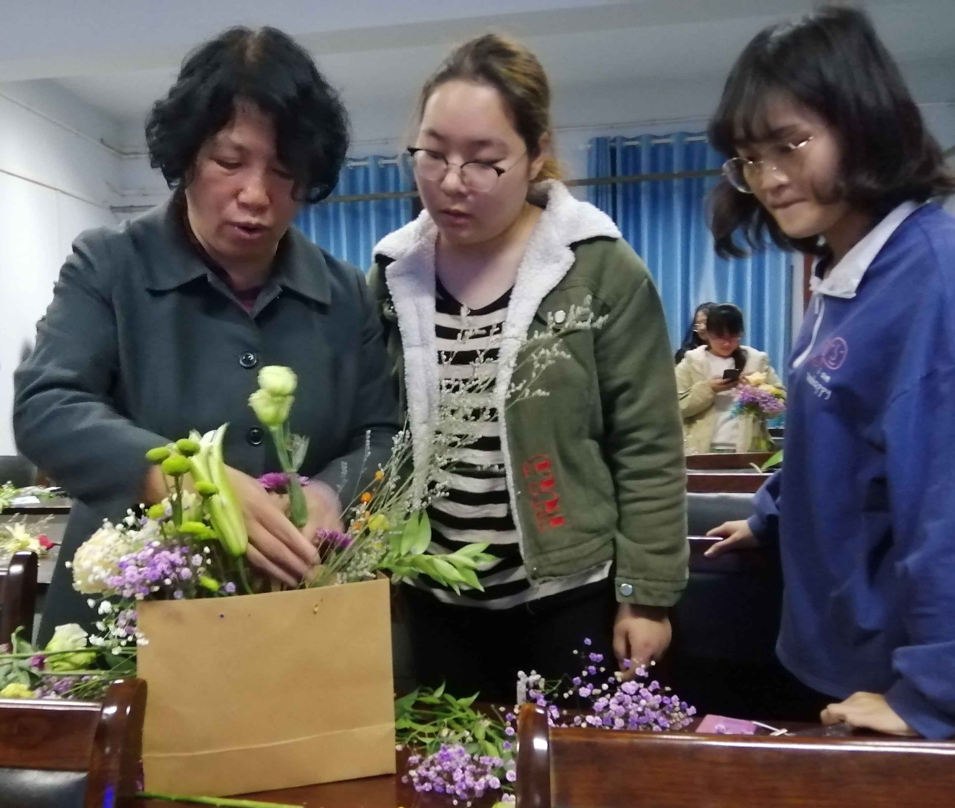 11月5日,色漫天堂 于文化路校区二号楼413会议室举办插花艺术比赛,特邀林学院观赏园艺方向武荣花老师和王献老师为学院花语协会活动担任插花艺术指导,18级15组参加插花比赛的选手共同参加了本次活动。