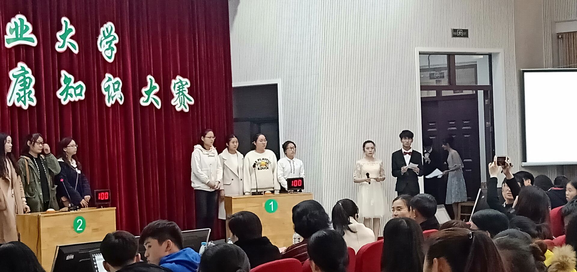 积极响应学校号召,为贴合大赛要求,学院先后于11月4日在龙子湖校区C109、C110教室举办了心理健康知识竞赛初赛,于11月10日在大教室二进行模拟复赛。初赛中以笔试作答的形式进行,选出成绩前24名同学进入复赛;复赛采用模拟大赛的形式进行,分别进行个人必答、团队抢答、团队必答以及风险题四个环节,最终选出表现优异的六位同学,作为大赛备赛选手积极备战。