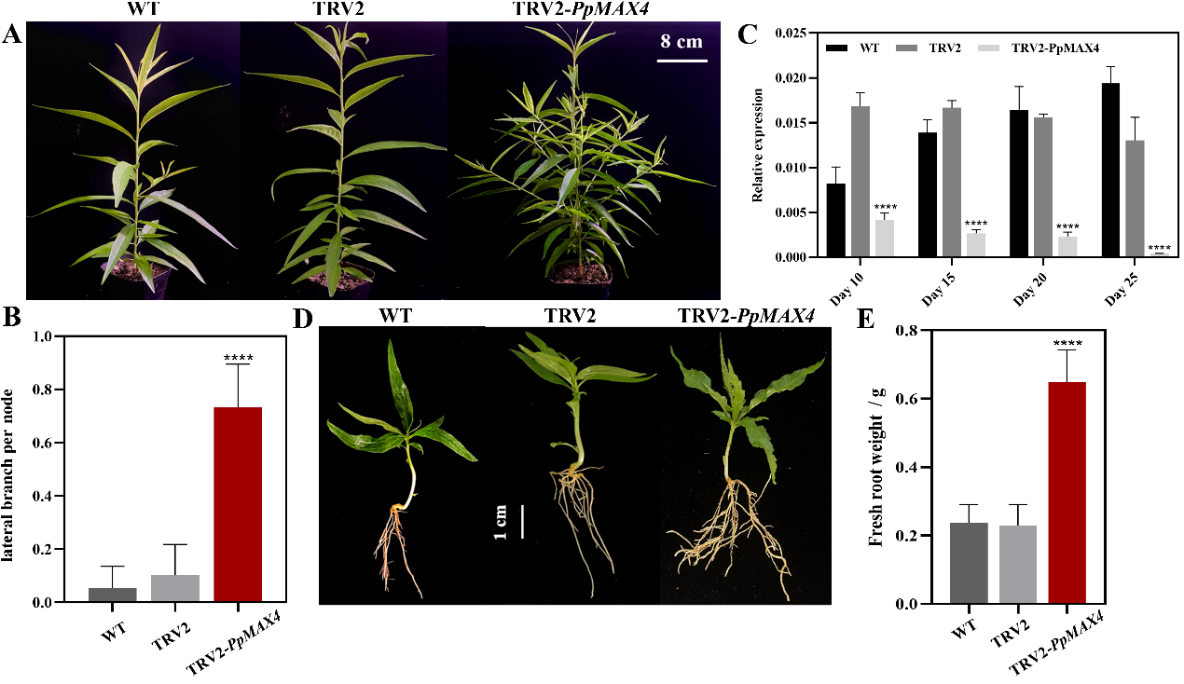 PpIAA14基因,有效减少了桃苗侧根的形成。该方法将成为分析桃树生长发育相关基因功能的有力工具。