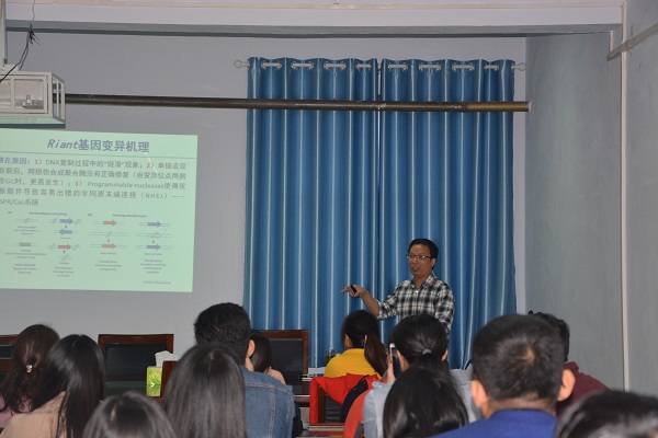 进行学术交流,韩研究员以“桃果实品质性状的遗传机理”为题,为大家带了一场精彩的学术报告。报告会由胡建斌教授主持,部分专业教师和全体研究生共同聆听了报告。