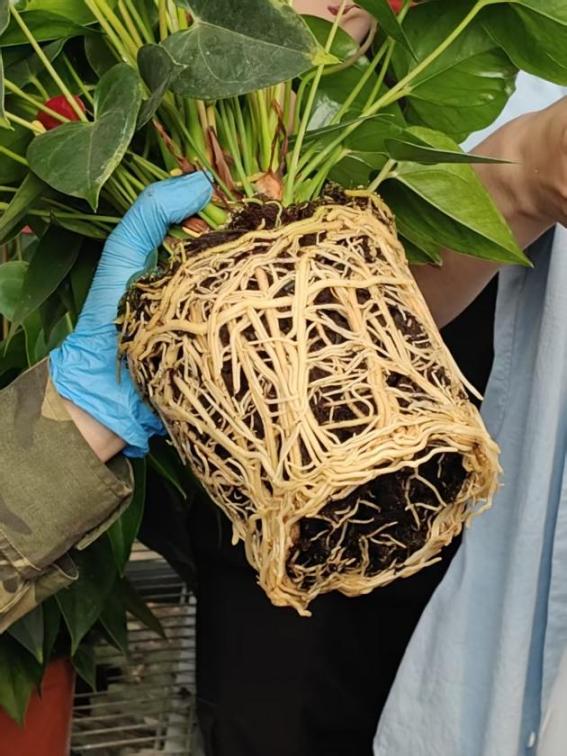 在蝴蝶兰展区,基地工作人员带领同学们系统学习了蝴蝶兰组培快繁的全流程,同学们结合课堂所学,进一步梳理了蝴蝶兰杂交、组培等育种方法,了解了其种子细小如粉尘的特性及市场价格差异,对蝴蝶兰产业形成了全面认知。在红掌展区,同学们深入了解了红掌的品种特色与适配场景。基地展示的多色系红掌品种,也让同学们直观感受到其丰富的遗传多样性与广阔的市场潜力。